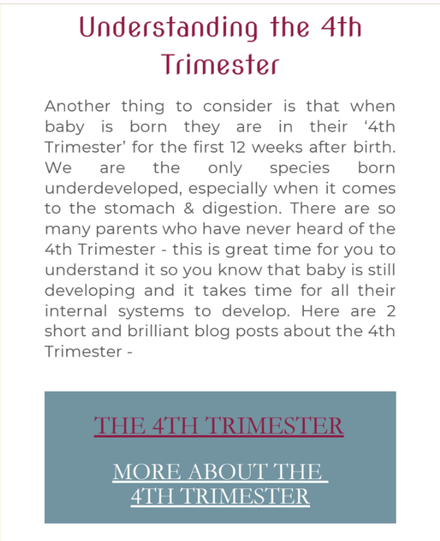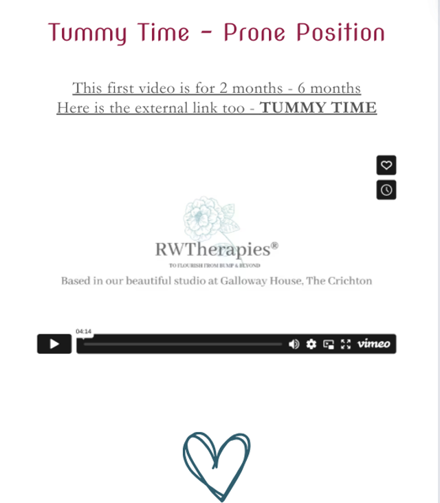 - Clickable links to videos, including several baby massage and tummy time routines, by a qualified baby massage instructor
